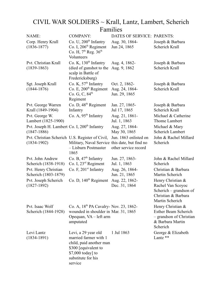 We thought Michael Lambert may have fought in the Civil War. We found he did not but many of his immediate and extended family did: