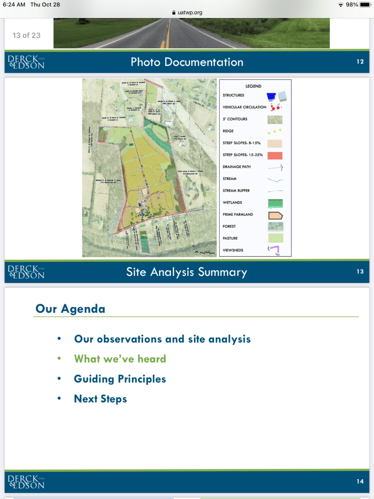 The Township is not planning to release the Derck & Edson presentation until the Minutes of the July 20 meeting are approved. Here is the newspaper version of the story and photos of most presentation slides used at the meeting. We will let the Sentinel and these 26 slides do the talking for now.
