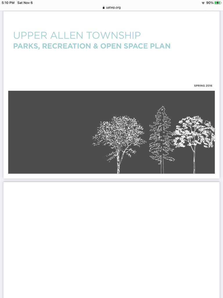 At the May 4, 2022 BOC Meeting, Ms. Debbie Goetz (of 1117 McCormick Rd.) made Public Comment and provided a Letter of Support for passive use and urged the Commissioners to consider buying the Banzhoff tract (currently “For Sale”) to bolster Upper Allen’s Park, Recreation and Open Space and provide creek access. See: