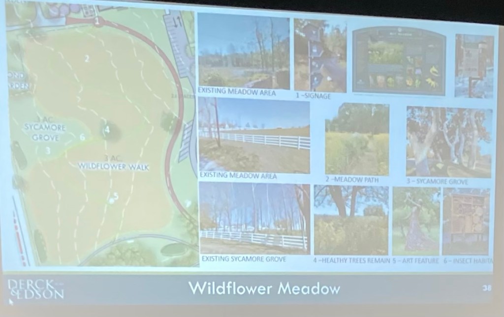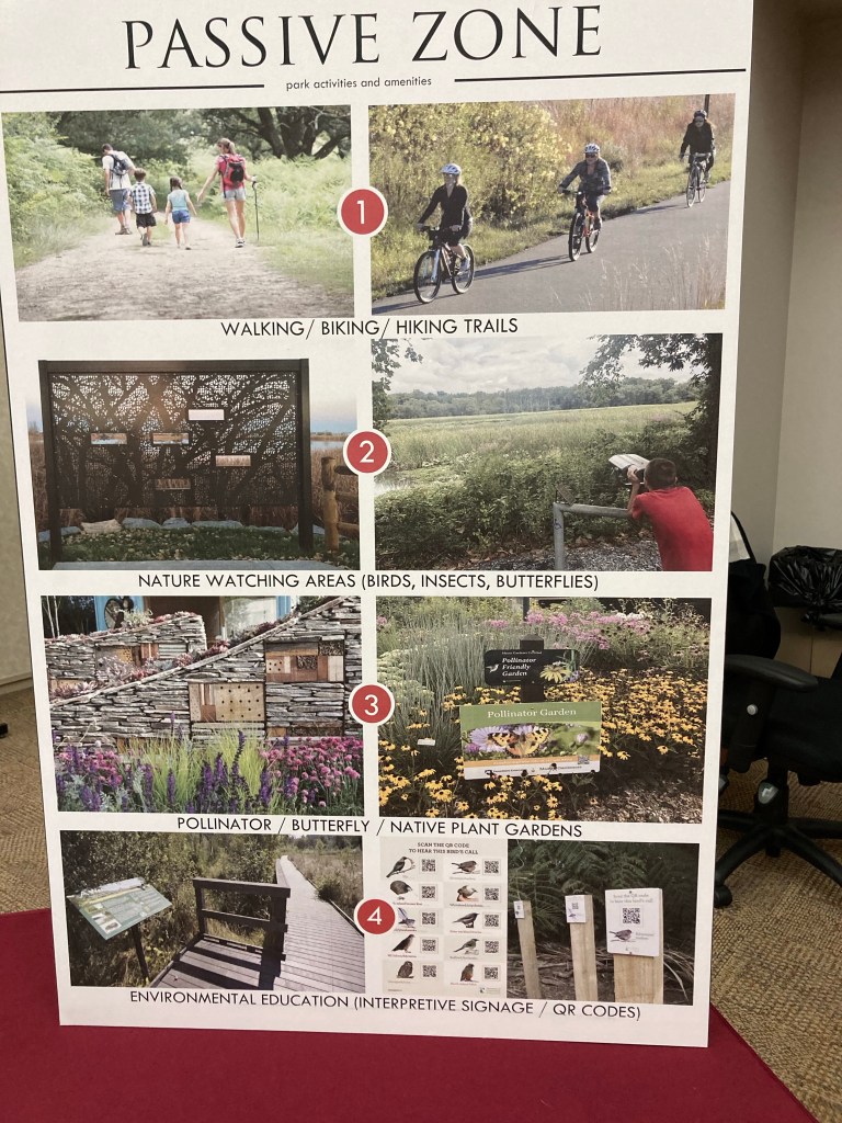 “As I see it— In regards to the design of the Lambert Farm Park— The results of the methodically-run resident input sessions revealed that a solid majority of the residents expressed interest for and cast their votes for a nature-centered calm and passive park. All of those votes (52% of all votes cast) are consistent with and dependent upon providing habitat and a place for all species of wildlife to survive and flourish— otherwise without the habitat there will not be any wildlife, and consequently, there will be nothing to look at while walking along the nature trail.”