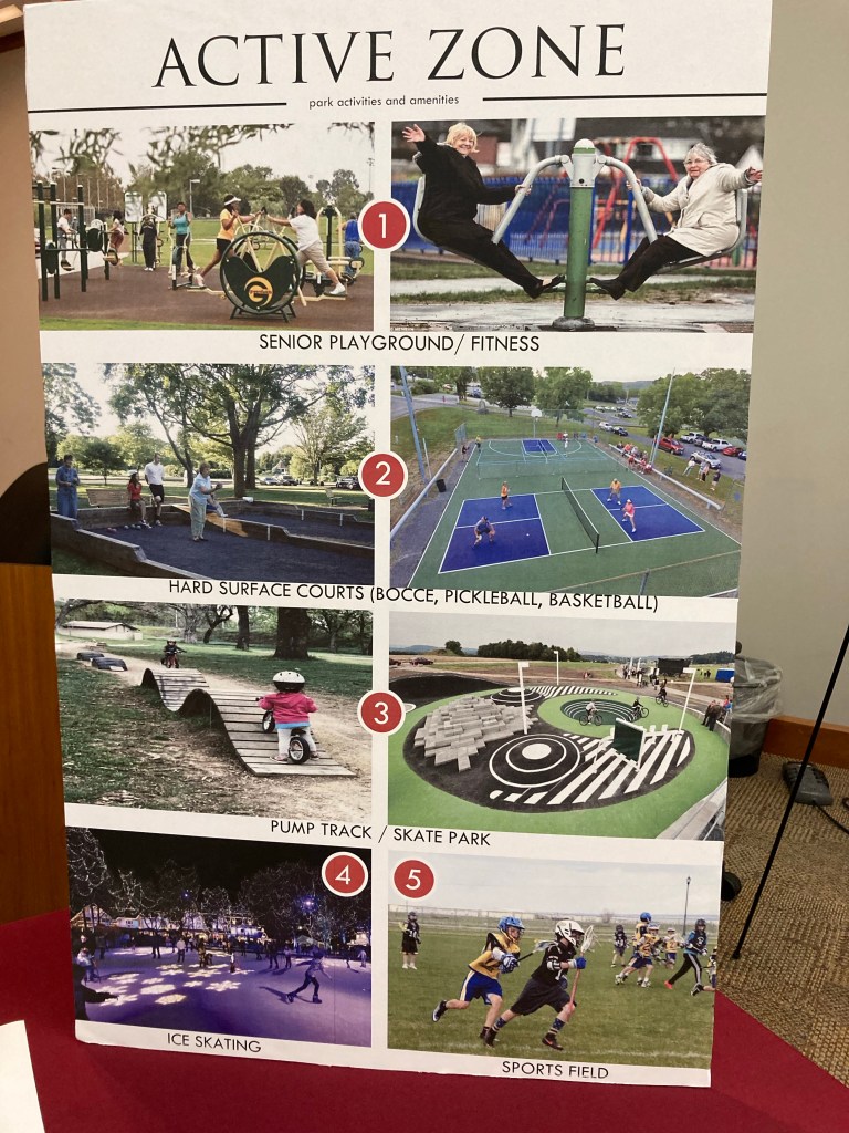 Mr. Schwartz wanted to say that he was not advocating for BMX or lacrosse field, rather he mentioned it to say he has total unawareness of what young people do today. He mentioned lacrosse because it was unpopular years ago and now it is popular. He suggests we look at what could be popular for young people in the future. Commissioner Anderson asked how many of us heard of bocce ball or pickle ball ten years ago. Commissioner Cochran said that pickle ball is an active use of the land and that bocce ball and shuffleboard are a different kind of active – it is smaller scale active.