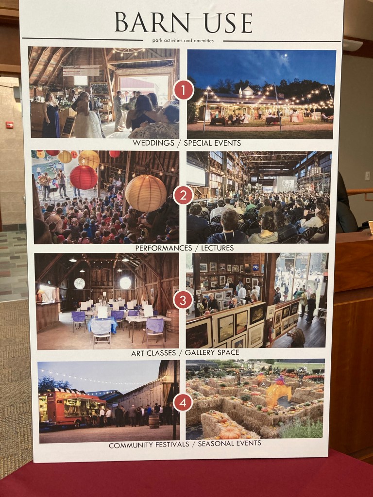 We asked Ms. Lee about other farm/parks in Pennsylvania or elsewhere that could serve as a model or visual aid for features that could be incorporated here. She said that is something Derck & Edson is researching. We encourage everyone to share what they have seen in their travels which should be considered here. Some names that have come up in recent discussions are Fort Hunter in Harrisburg, PA; Linden Hall in Lititz, PA and Indian Steps in Airville, PA.