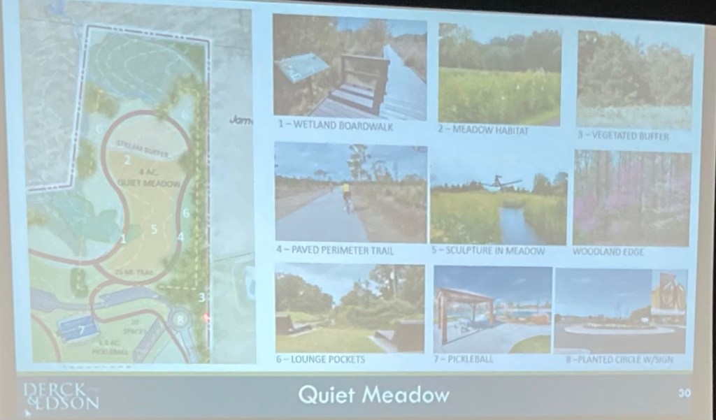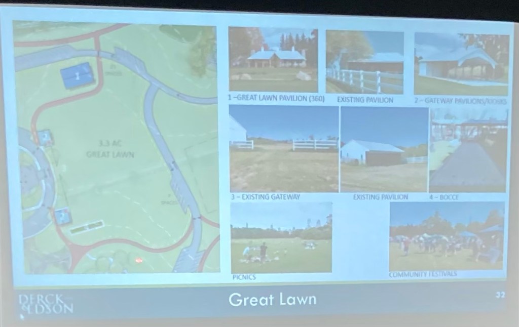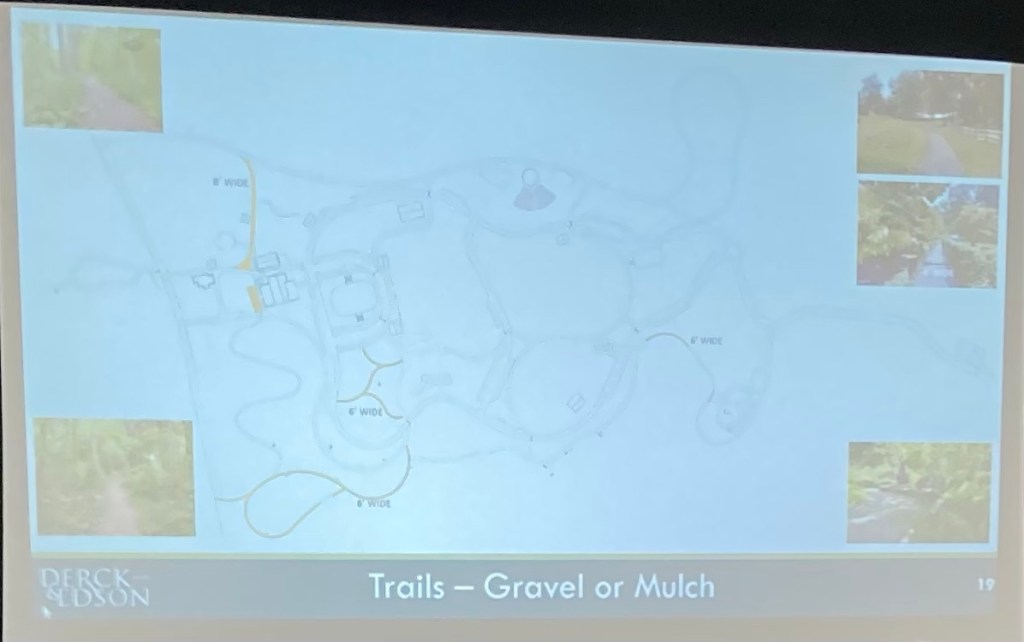 The more we study the Master Plan, the more we see Derck & Edson has done an excellent job balancing interests – and that this can be an award winning park that will garner recognition and prestige for the Township as well as the enjoyment of area residents for generations to come. The aesthetics of the site certainly lend itself to this. We note Ms. Lee of Derck & Edson indicated the farmhouse can still be part of the Master Plan.