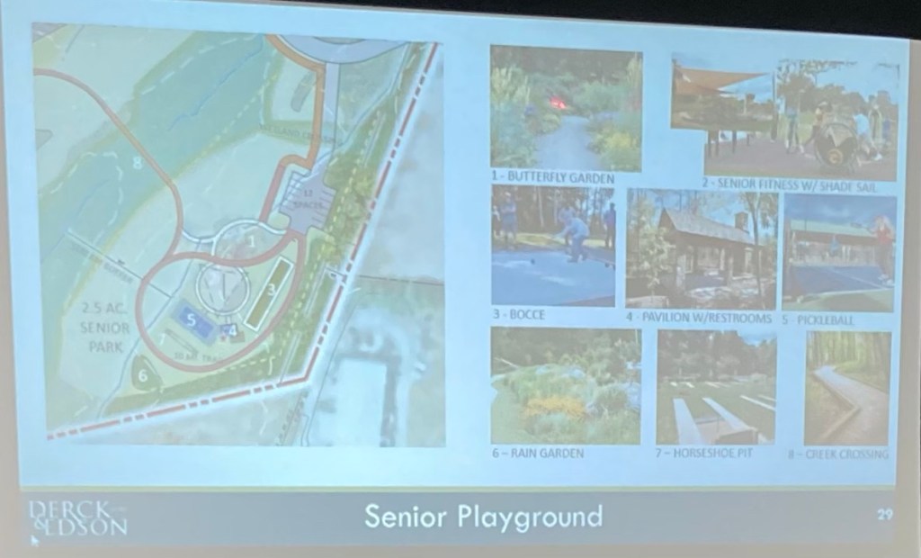 Bruce Schwartz of 1025 Appache Trail, stated that Ms. Lee did a good job and without bias. He said he was surprised there were not a lot of teenagers represented and that he had to look up what a pump park was. He said he played lacrosse when he was younger, before it was as popular as it is now. He said if we are going to put something there for young people, it would be wise to see what kinds of things have traction for young people as we look forward to 10 to 15 years out. Commissioner Cochran mentioned BMX. President Martin said he likes the reminder that we must design this with the idea of what will the generations after us appreciate.