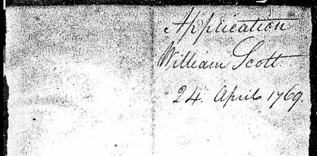 On the 1785 Tax and Exoneration Lists, it lists: William Scott being taxed on owning 200 acres of land, 2 horses, 3 cows, 1 still. There is a John Scott, Sr., possibly a son, owning 200 acres, 4 horses, and 2 cows.