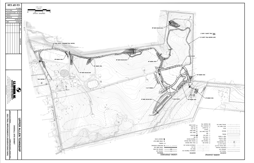 Trail design has changed in recent years and the current recommended standard is for trails to be 8 ft. wide. This doesn’t mean every trail needs to be 8 ft. wide – or paved to be ADA compliant. Upper Allen has few trails this wide at other parks because they were built to earlier standards. Most other trails are 4-6 ft. wide.