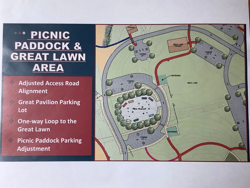 What you see in the photo is now slated to be paved with an 8 ft. wide trails and 12 ft. wide emergency access road. The paddock in the far background is slated to become a 350 person pavilion unless the C.S. Davidson Master Plan gets changed.