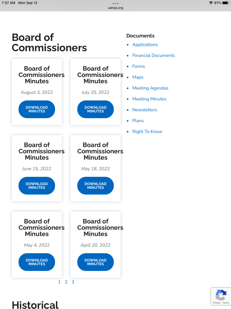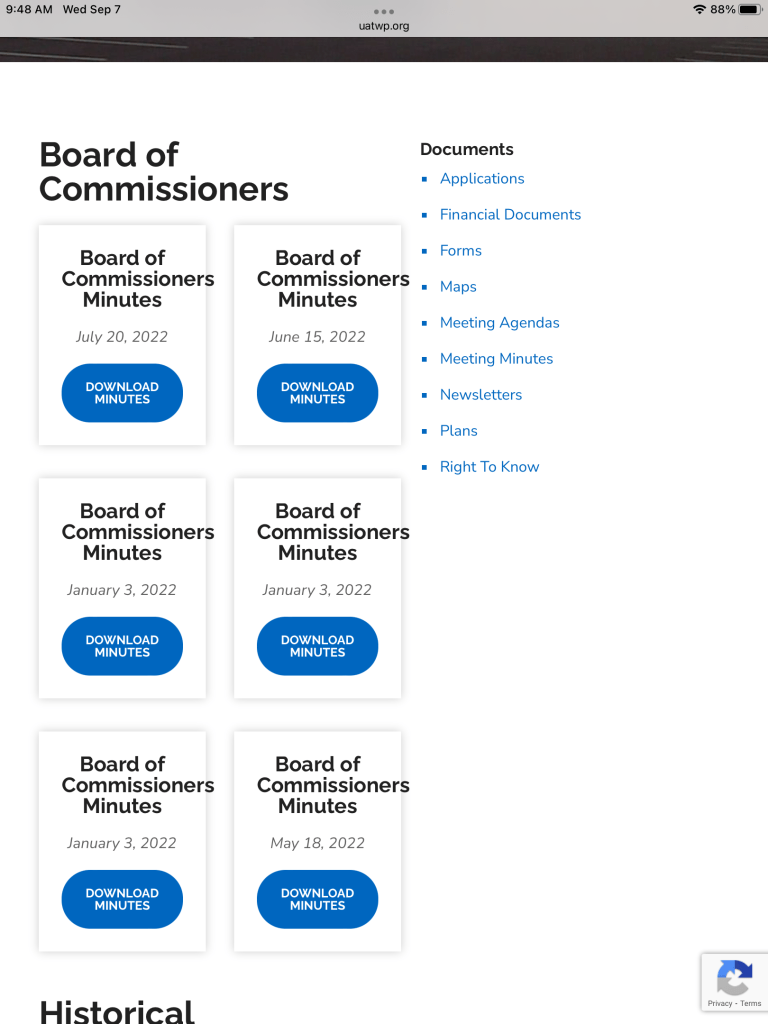 UAT has also corrected the website presentation of its Meeting Minutes and now shows all minutes back to October , 2021. We thank the staff for doing this and Heather Negley (Board Secretary) in particular for doing such a great job with the minutes.