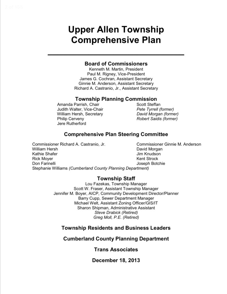 The Master Plan slides have yet to be posted on the Township website and the Meeting Minutes continue to be incomplete and out of order. See Meeting Minutes – Upper Allen Township. This is unfair to anyone who would want to review and comment on the Master Plan.