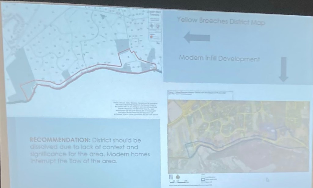 Mr. Fairchild said “I’m just trying to understand the Boards thinking, since we haven’t had any, um, professional historians give an opinion – certainly, Friends of the Farm has tried to provide a lot of historical information – but what qualifies the board to more or less determine that the farmhouse is not historically significant”