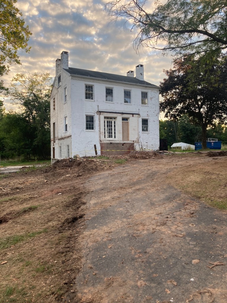 The house will likely be moved later this week or early next week depending on weather and site conditions. The plan is to move the 1855 brick structure off its foundation and to the Southeast; then across McCormick Rd. and to the Southwest to its new location. A new foundation will then be rebuilt from underneath as the house sits on cribbing.