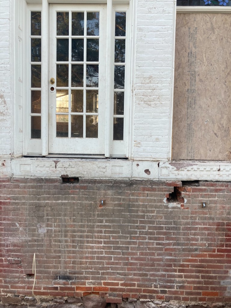 Matt has uncovered an old brick terrace off the south side with evidence of columns supporting the veranda. This further suggests Greek Revival architecture and provides a good supply of period brick to use in the restoration.