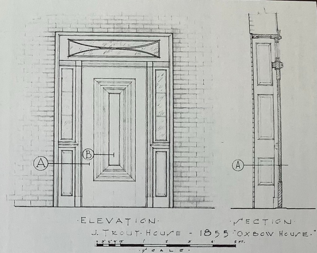 The front door sills are red sandstone with carved geometric patterns. A drawing of the original (left) front door is shown on pg. 29 of Early Architecture of Upper Allen Township (1976).