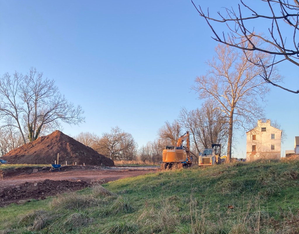 We reached out to Matt Taylor for an update on the farmhouse move. Structurally, the building is ready to be moved; however, permit applications are still being reviewed and rain water runoff information needs submitted. New footers can (likely) be dug in a week or so and foundation constructed after the house is in place.
