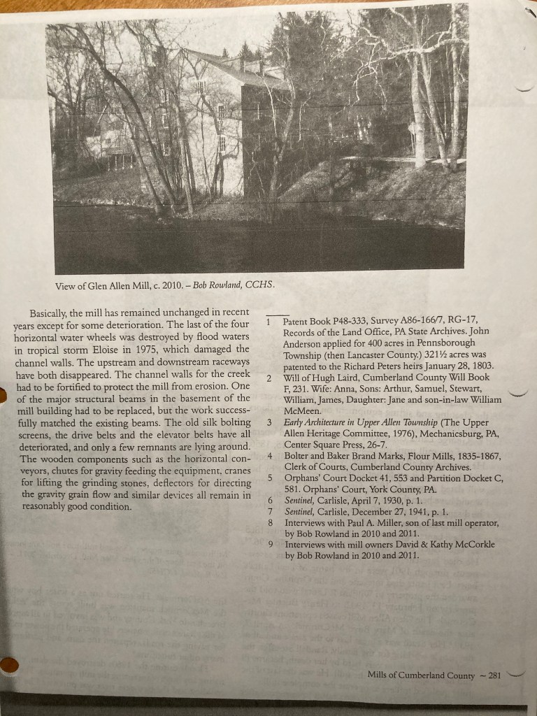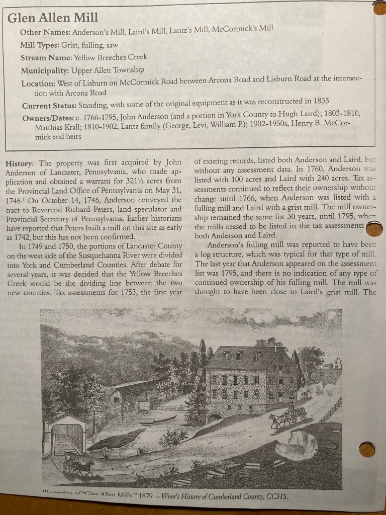 The information below is from “Mills of Cumberland County” published by the Cumberland County Historical Society in 2012.